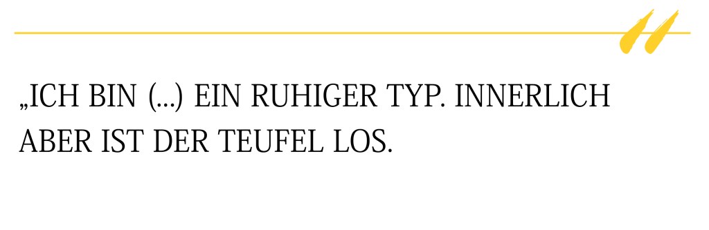In meiner Freizeit spiele ich gerne mit unseren Hunden – aber eben auch mit vielen Gedanken. Ich mag es schlicht und trage viel Schwarz – auch unter meiner Haut. Ich wage mich ungern aus meiner Komfortzone, ich bin ein absoluter Gewohnheitstyp, ich mag geregelte Abläufe und eine feste Struktur. Ich bin eine Listen-Schreiberin, brauche einen bestimmten Rhythmus. Und Sicherheit. Kontrolle.