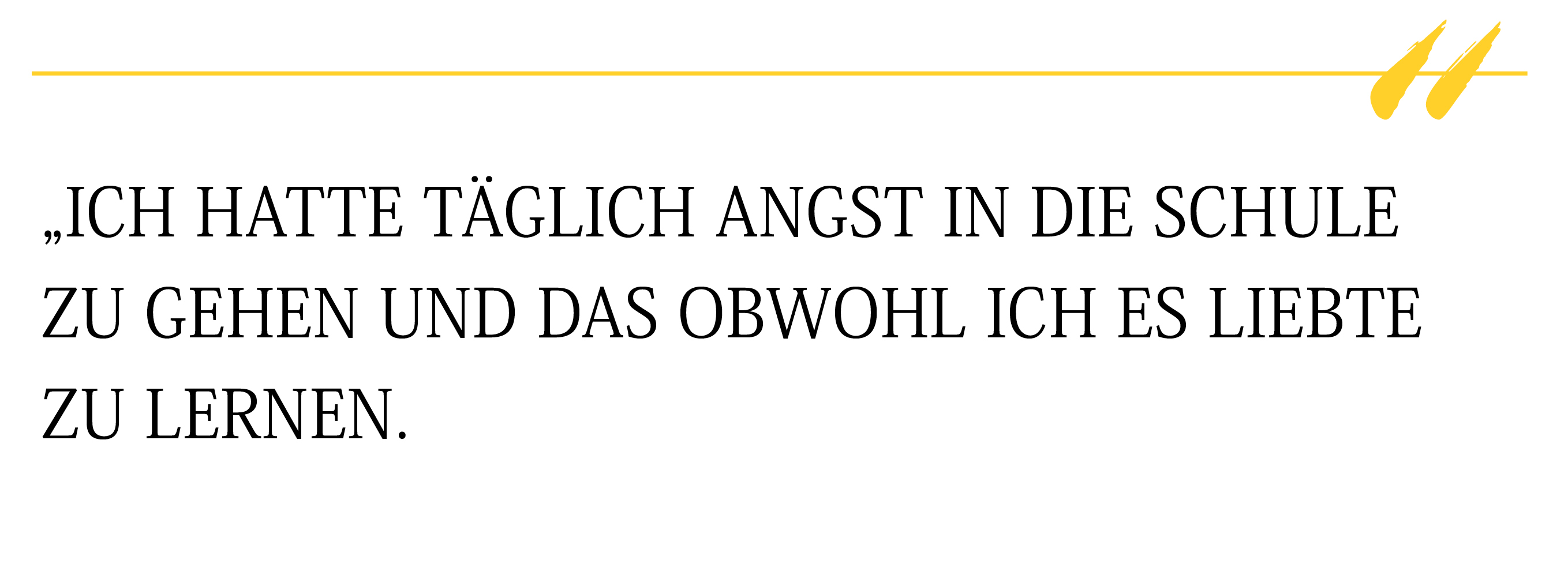 Lange Zeit blieb es unentdeckt bzw. waren ich und meine Eltern machtlos dagegen. Ich hatte täglich Angst in die Schule zu gehen und das obwohl ich es liebte zu lernen.